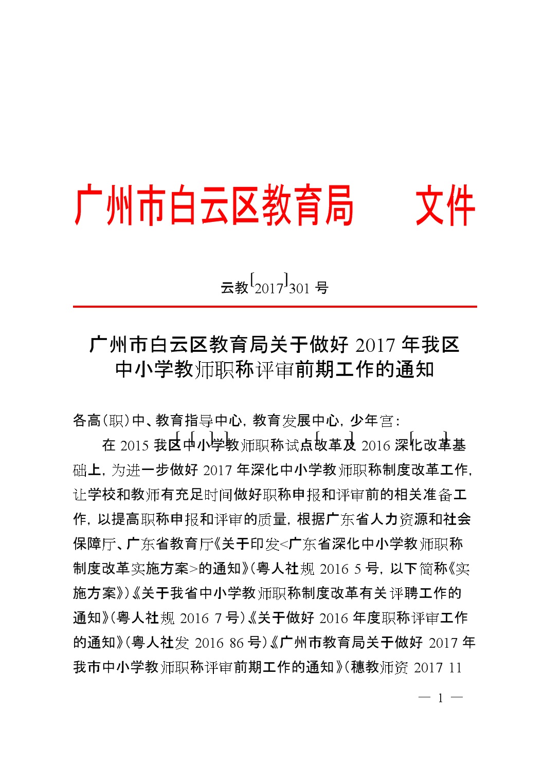 广州市白云区教育局关于做好2017年我区中小学教师职称评审前期工作的通知(2017-301).doc.doc