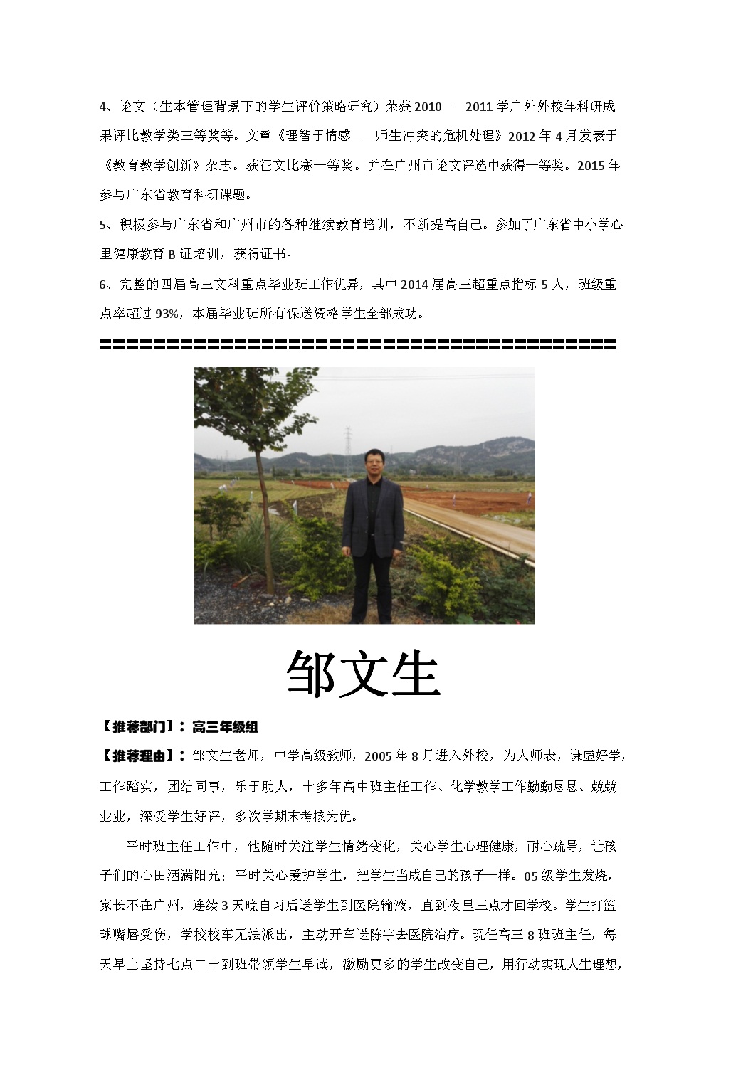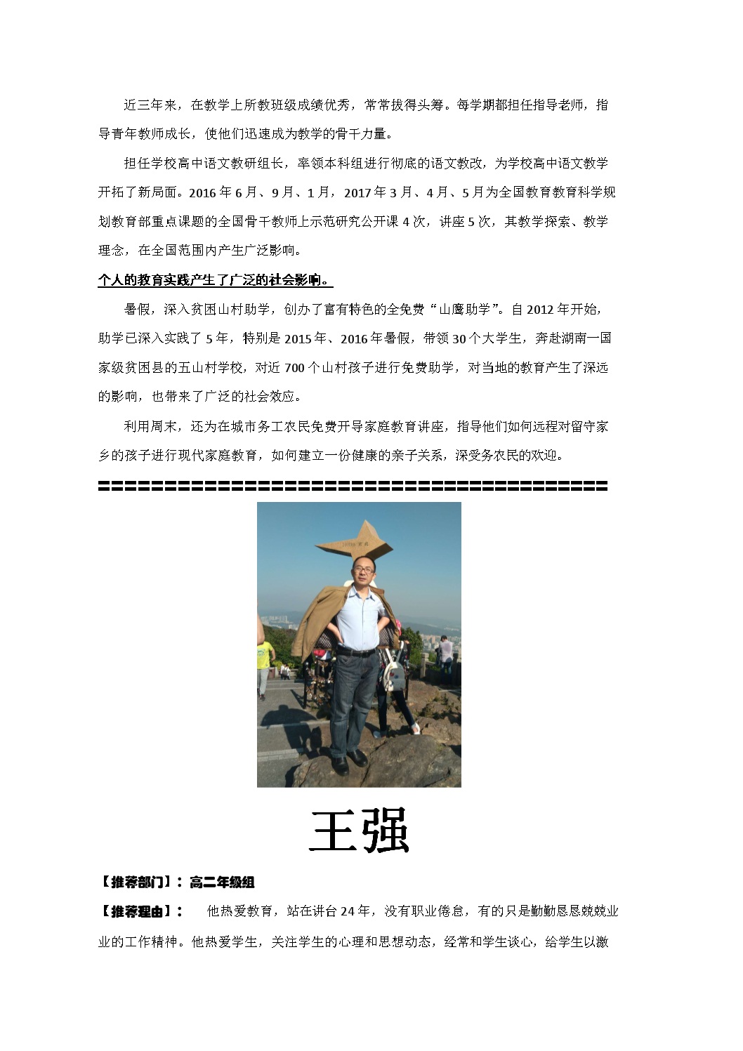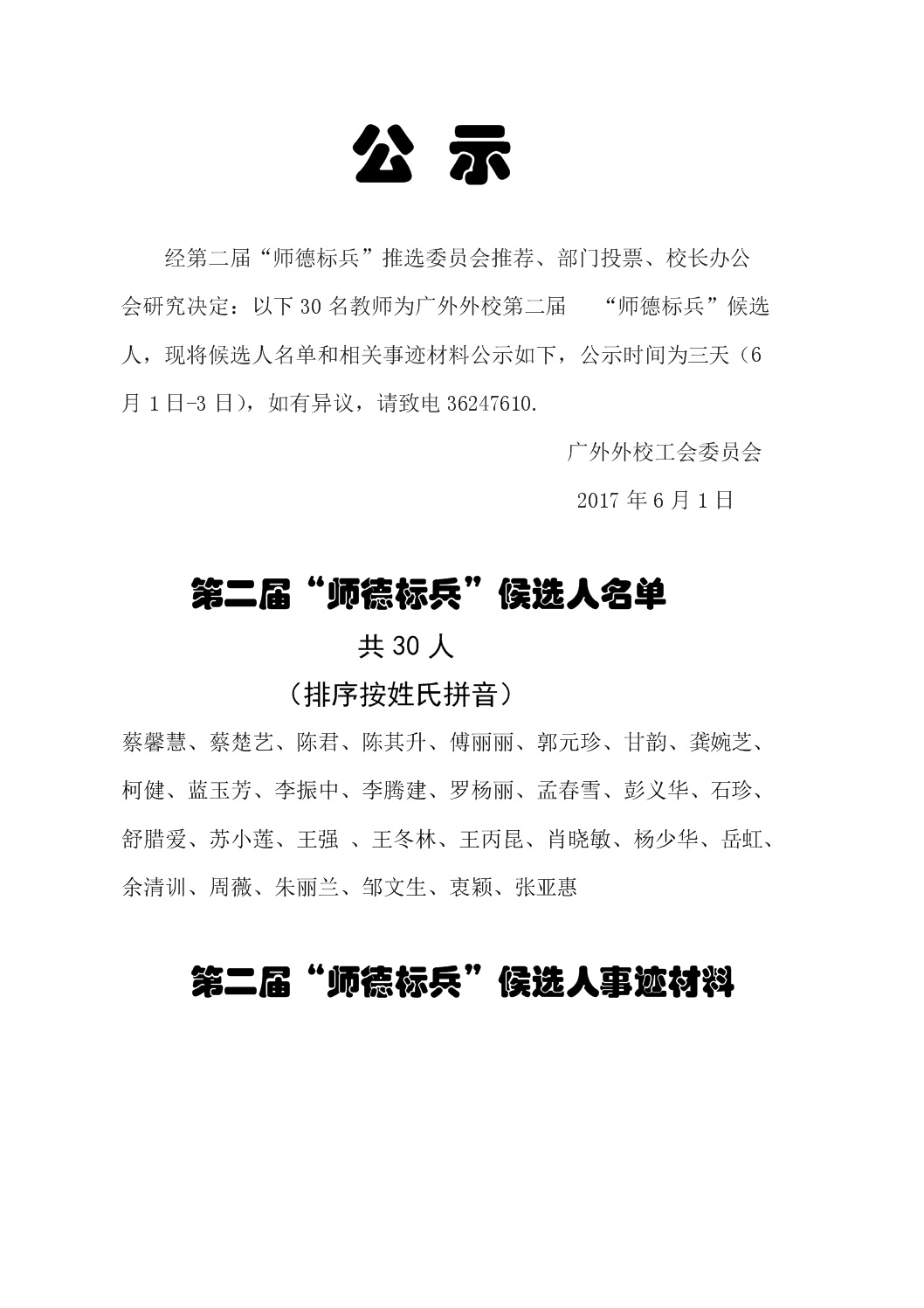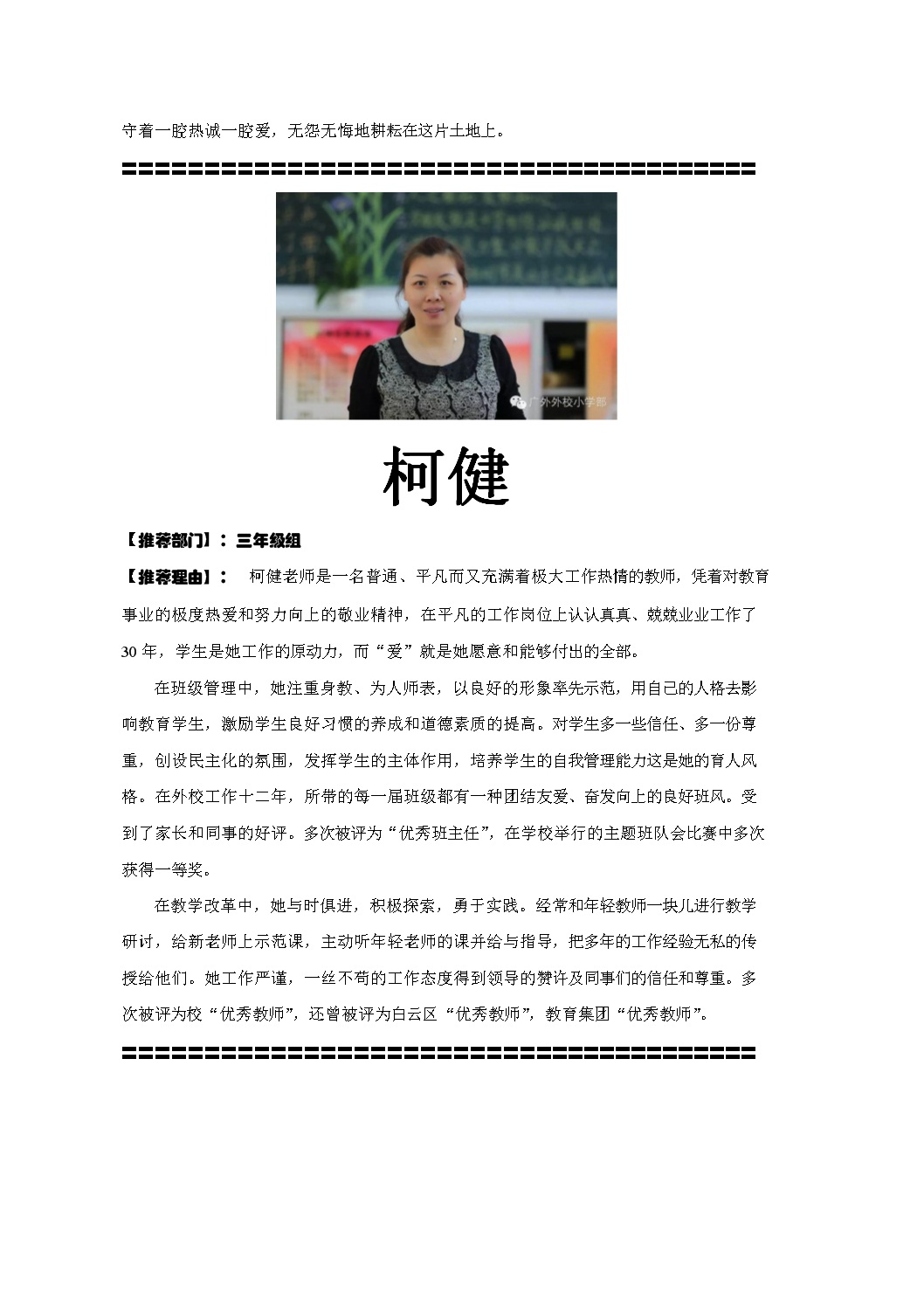 第二届“师德标兵”候选人名单、事迹材料公示.docx