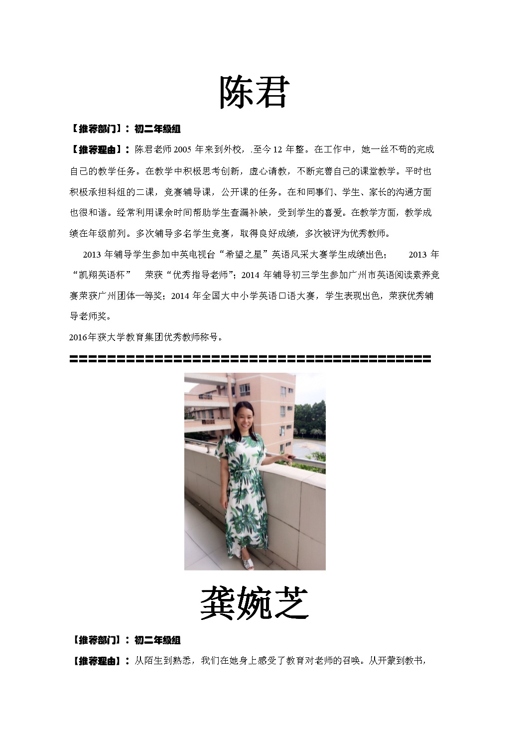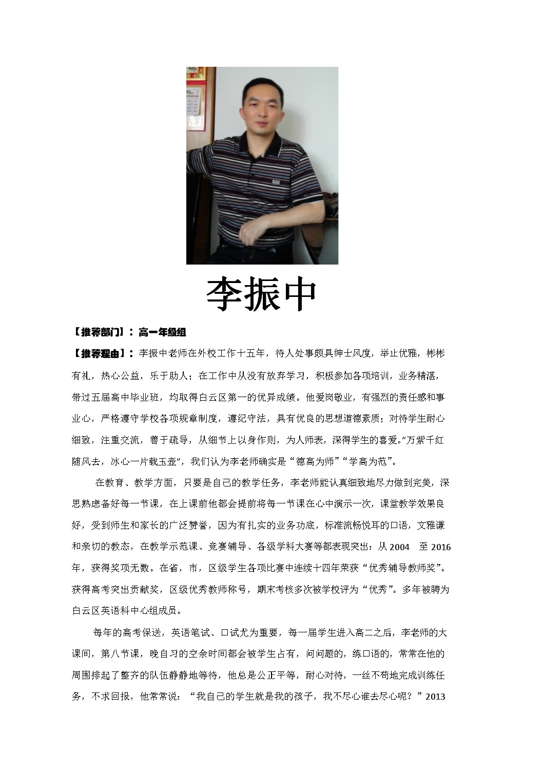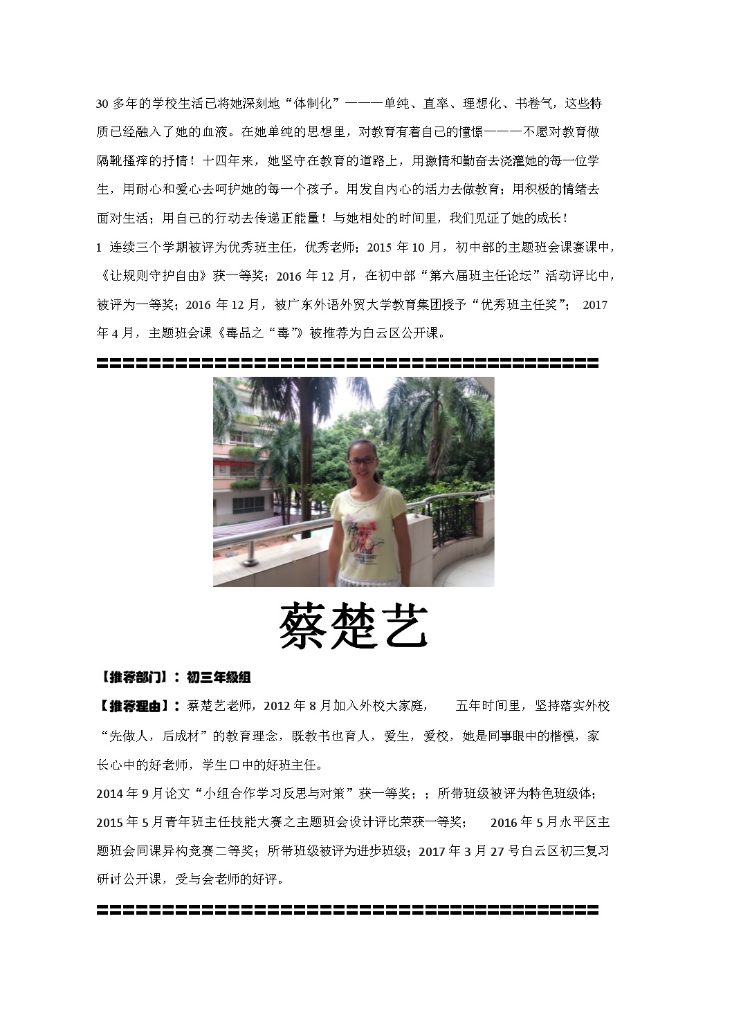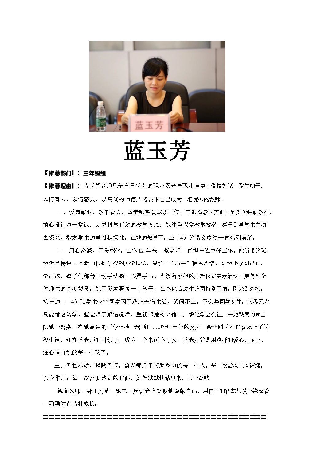 第二届“师德标兵”候选人名单、事迹材料公示.docx