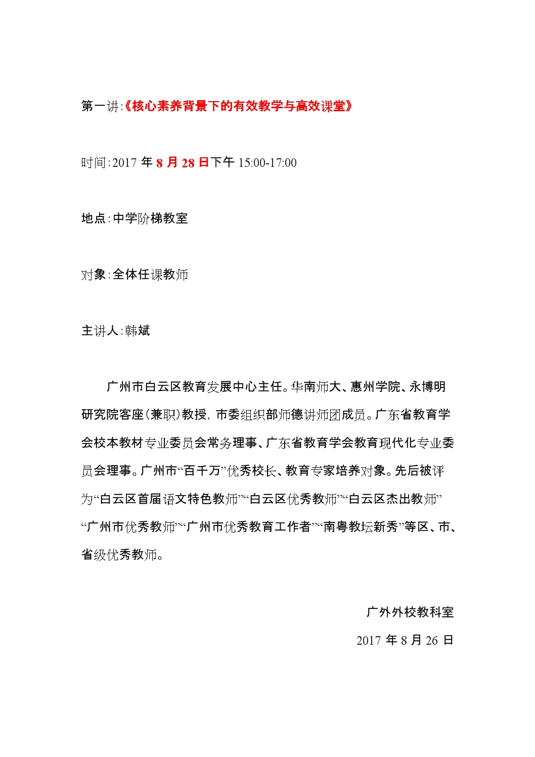 2017-2018学年度第一学期教师培训暨“百家讲坛”通知