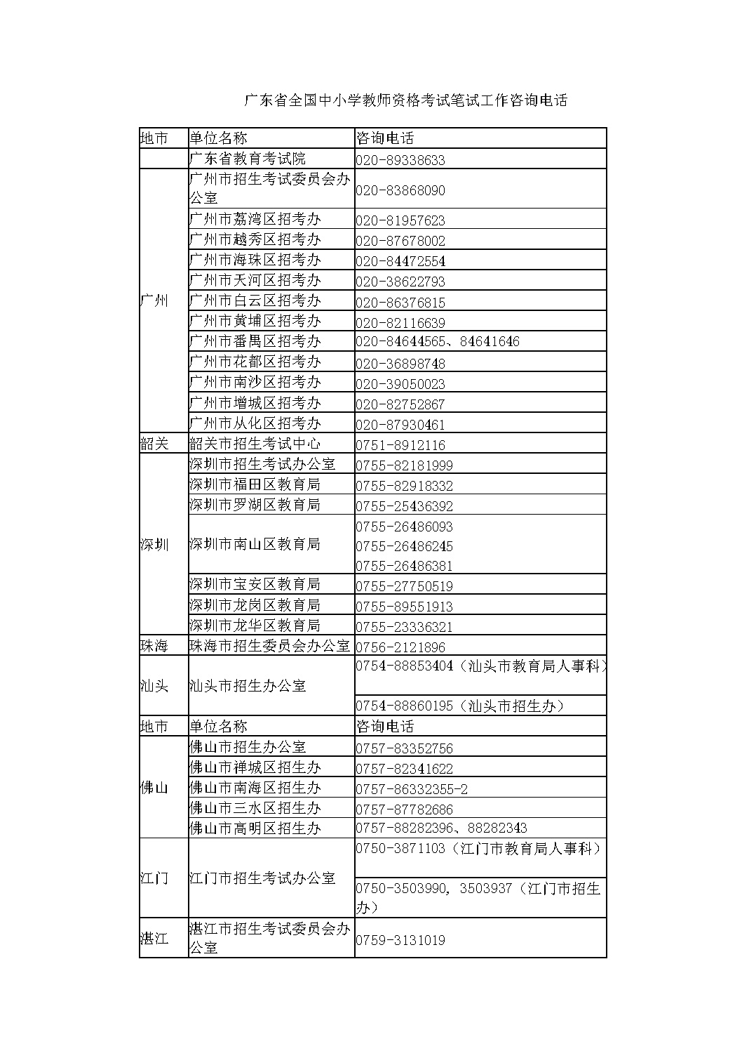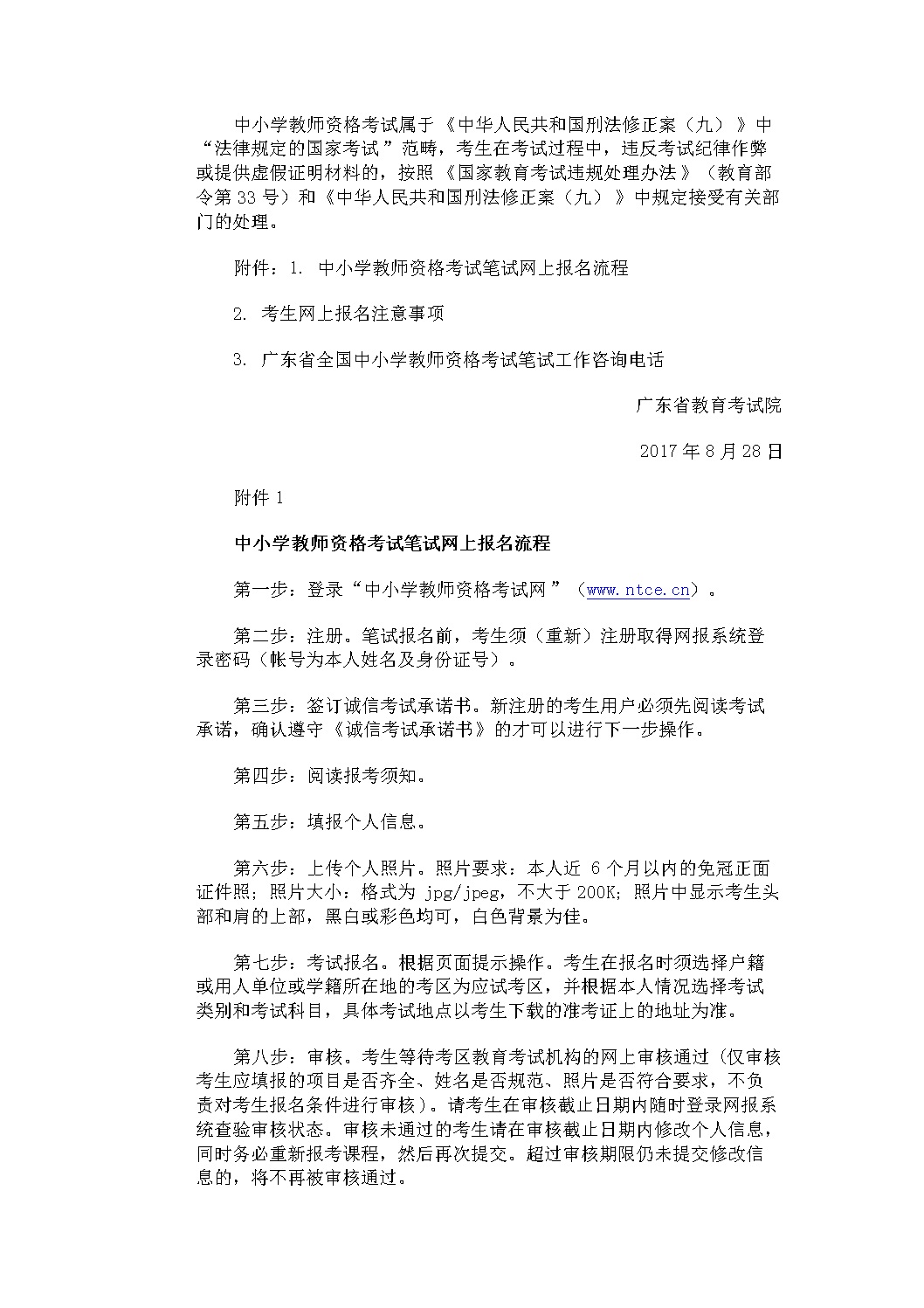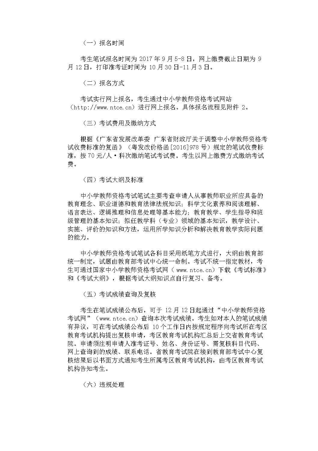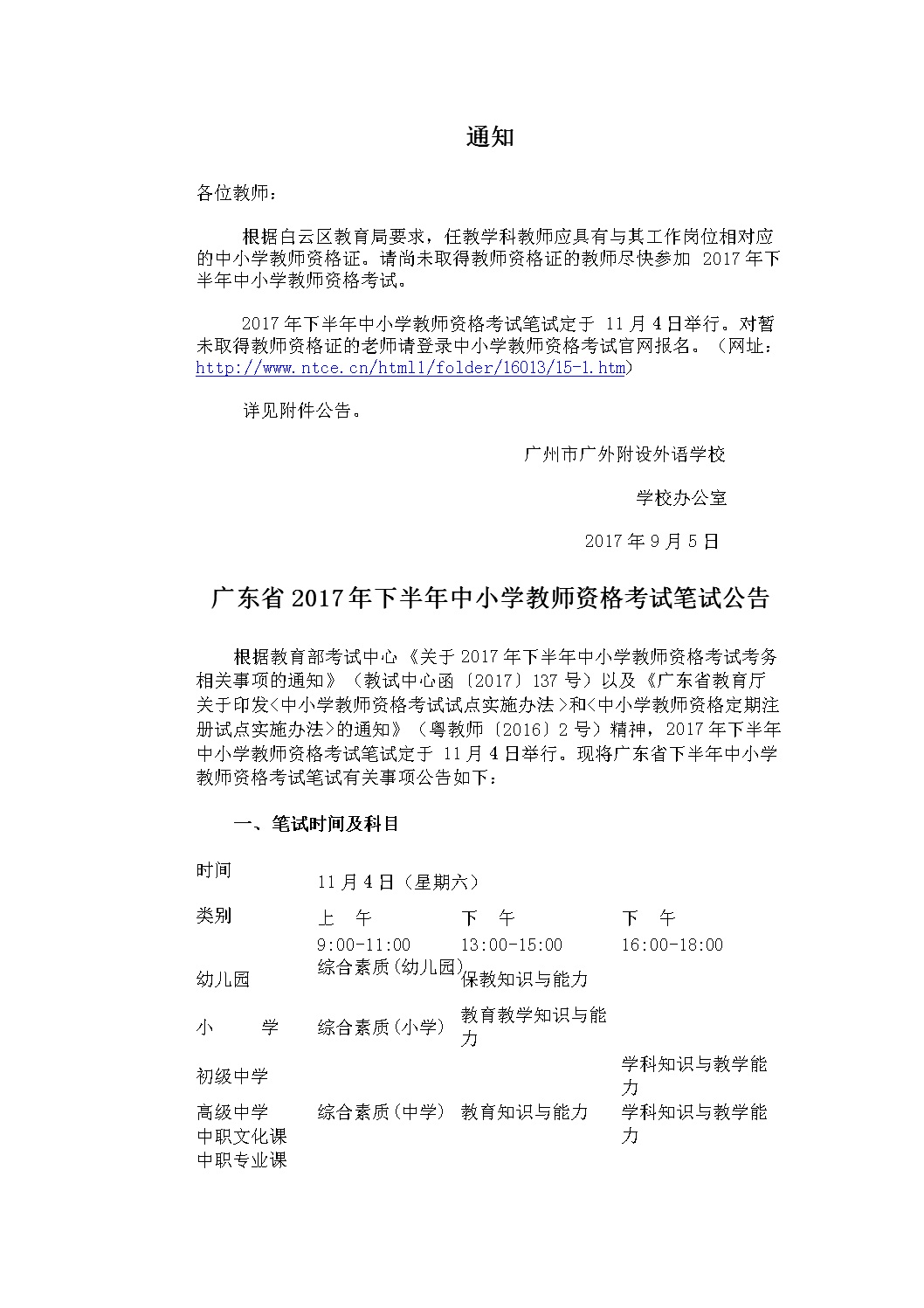 广东省2017年下半年中小学教师资格考试笔试公告