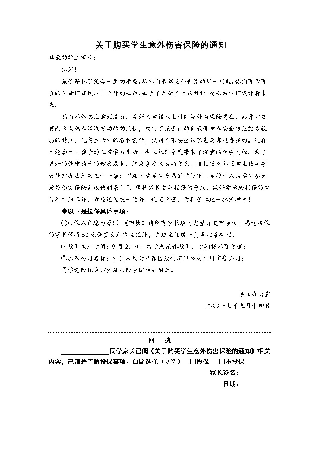关于购买学生意外伤害保险的通知