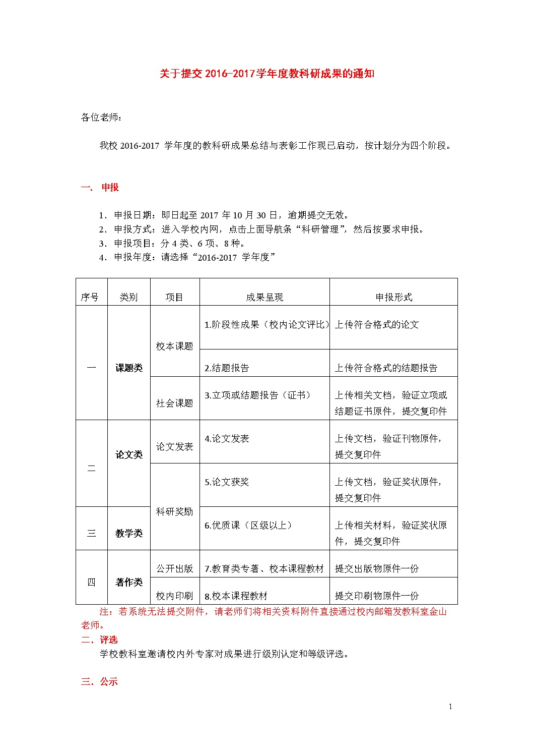 关于提交2016-2017学年度教科研成果的通知
