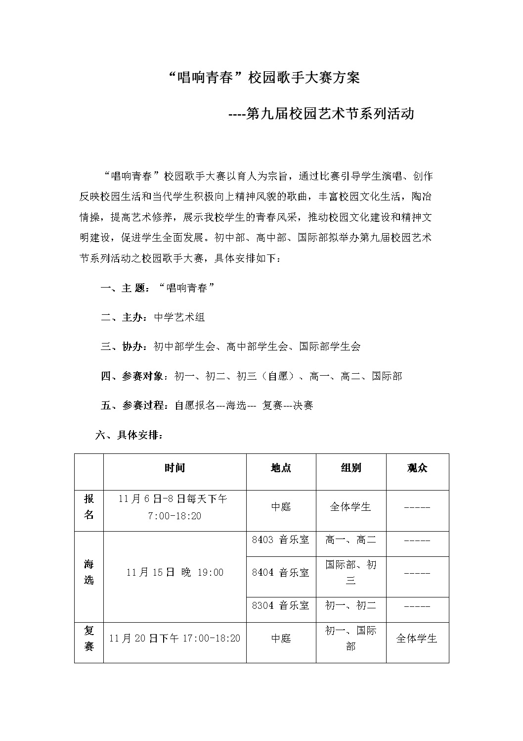 “唱响青春”校园歌手大赛方案
