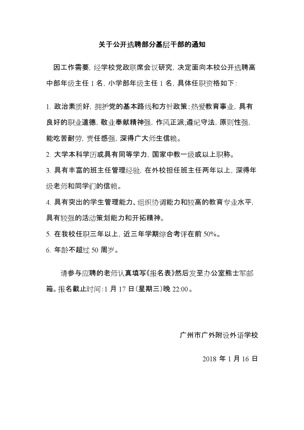 关于公开选聘部分基层干部的通知