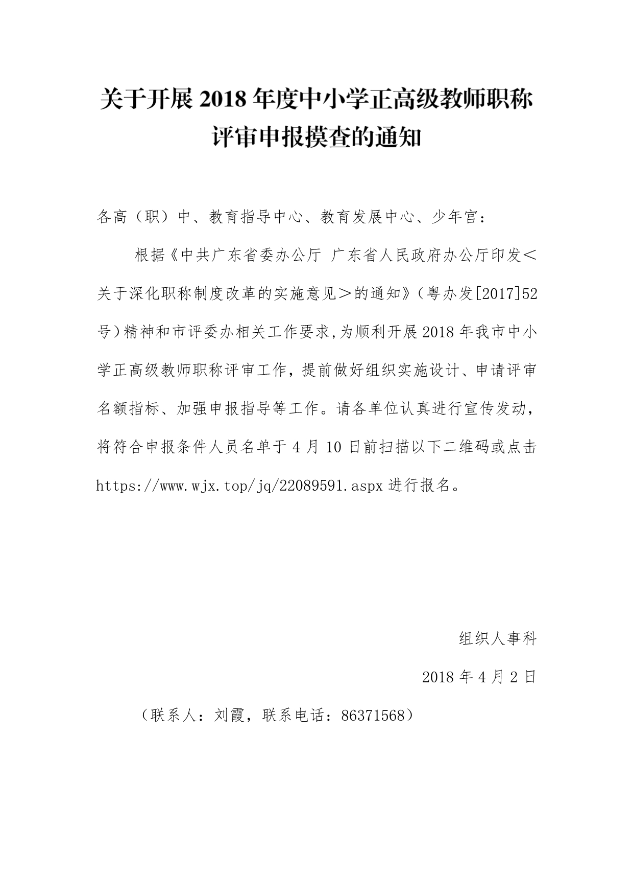 关于开展2018年度中小学正高级教师职称评审申报摸查的通知