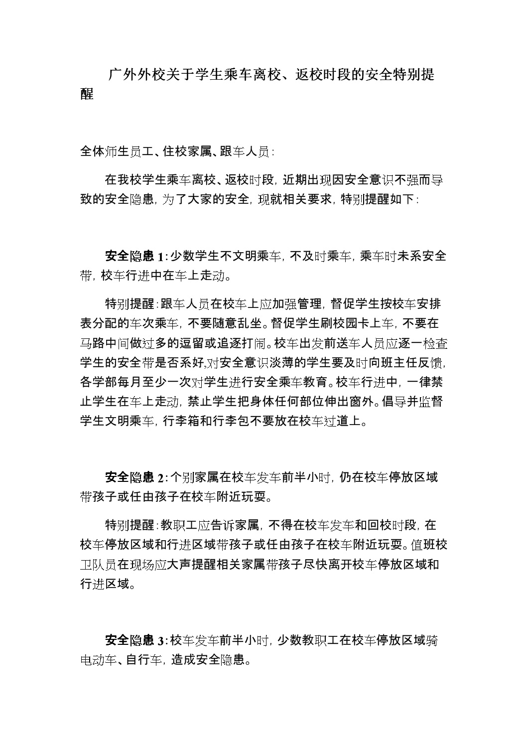 广外外校关于学生乘车离校、返校时段的安全特别提醒