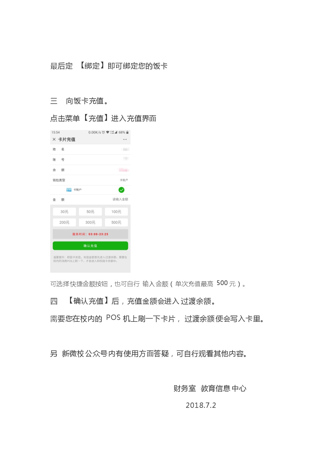 学校一卡通(教职工饭卡)微信平台充值使用方法