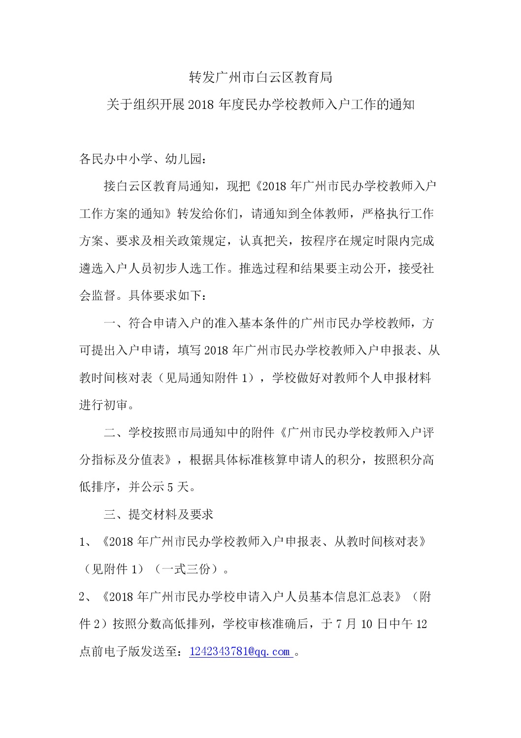 【特急】广州市白云区教育局关于组织开展2018年度民办学校教师入户工作的通知.doc