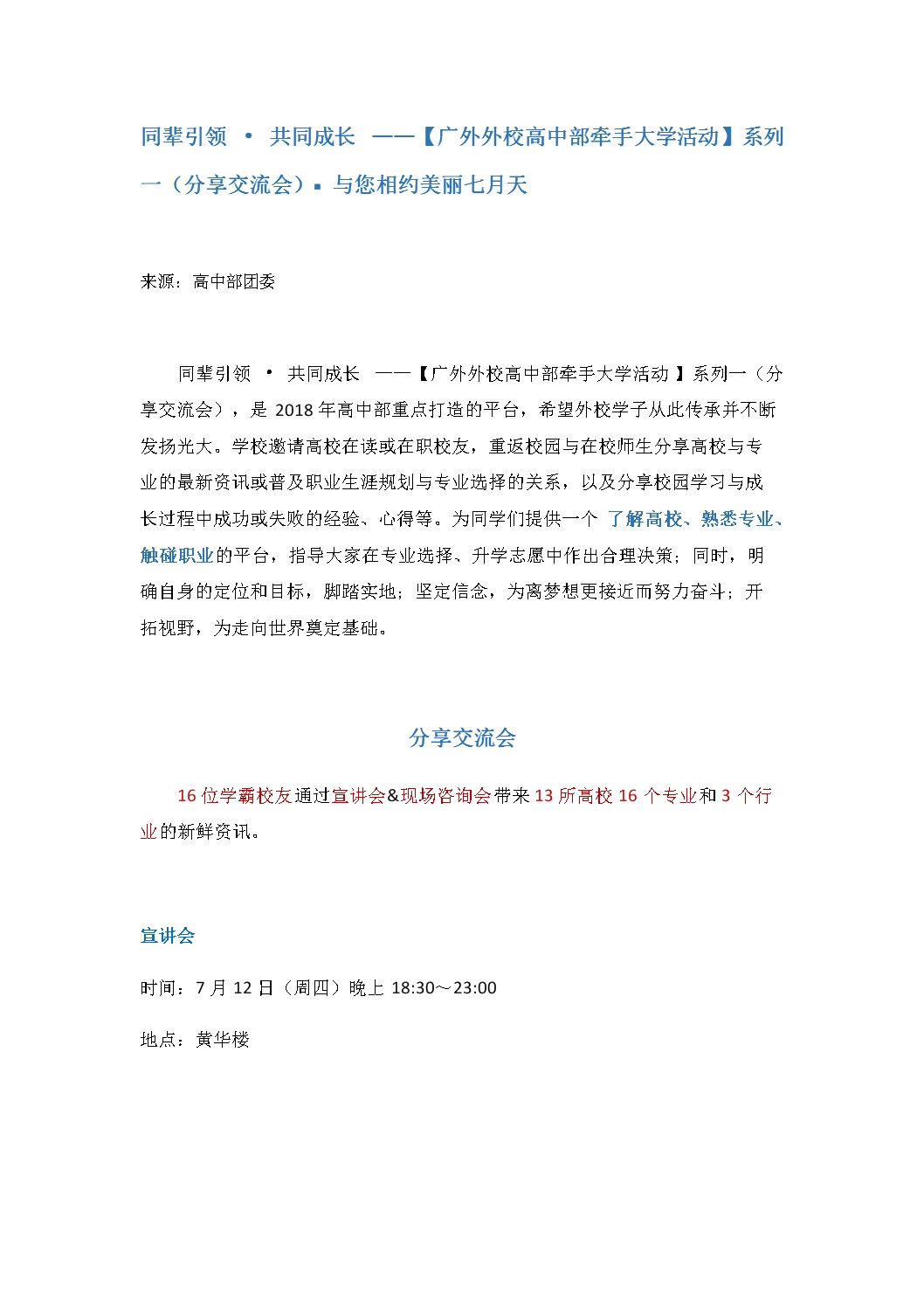 广外外校高中部“牵手大学”活动
