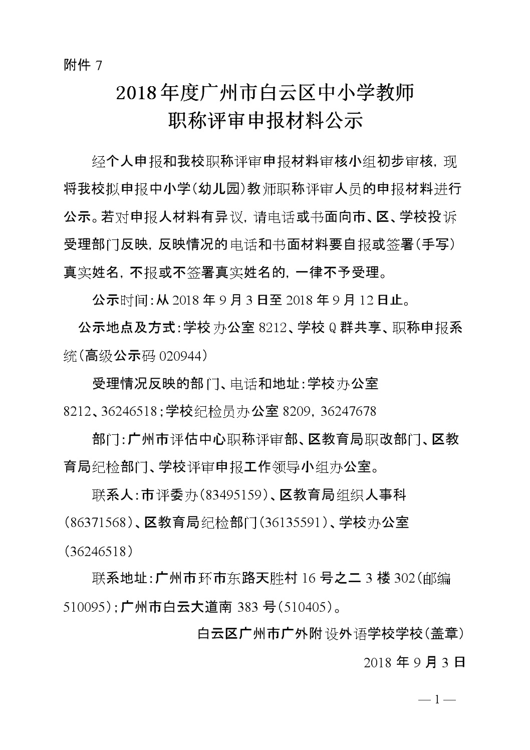 2018年广州市广外附设外语学校专业技术人员申报资格评前公示(高级)