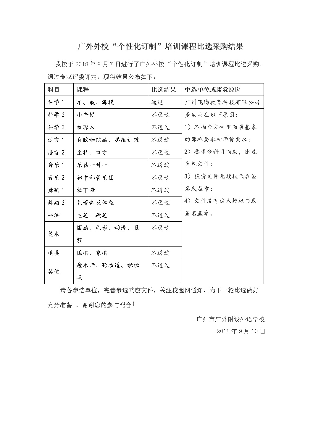 广外外校“个性化订制”培训课程比选采购结果