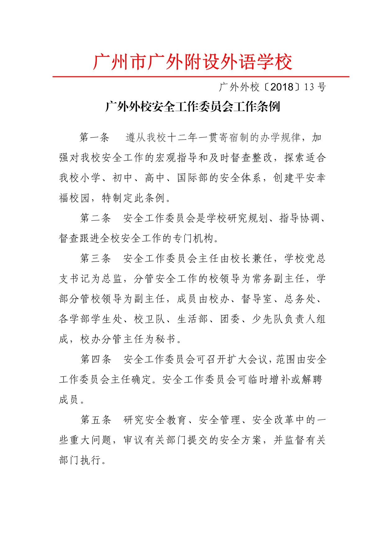 广外外校安全工作委员会工作条例