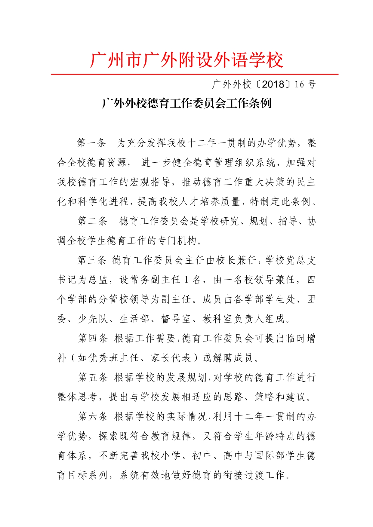广外外校德育工作委员会工作条例