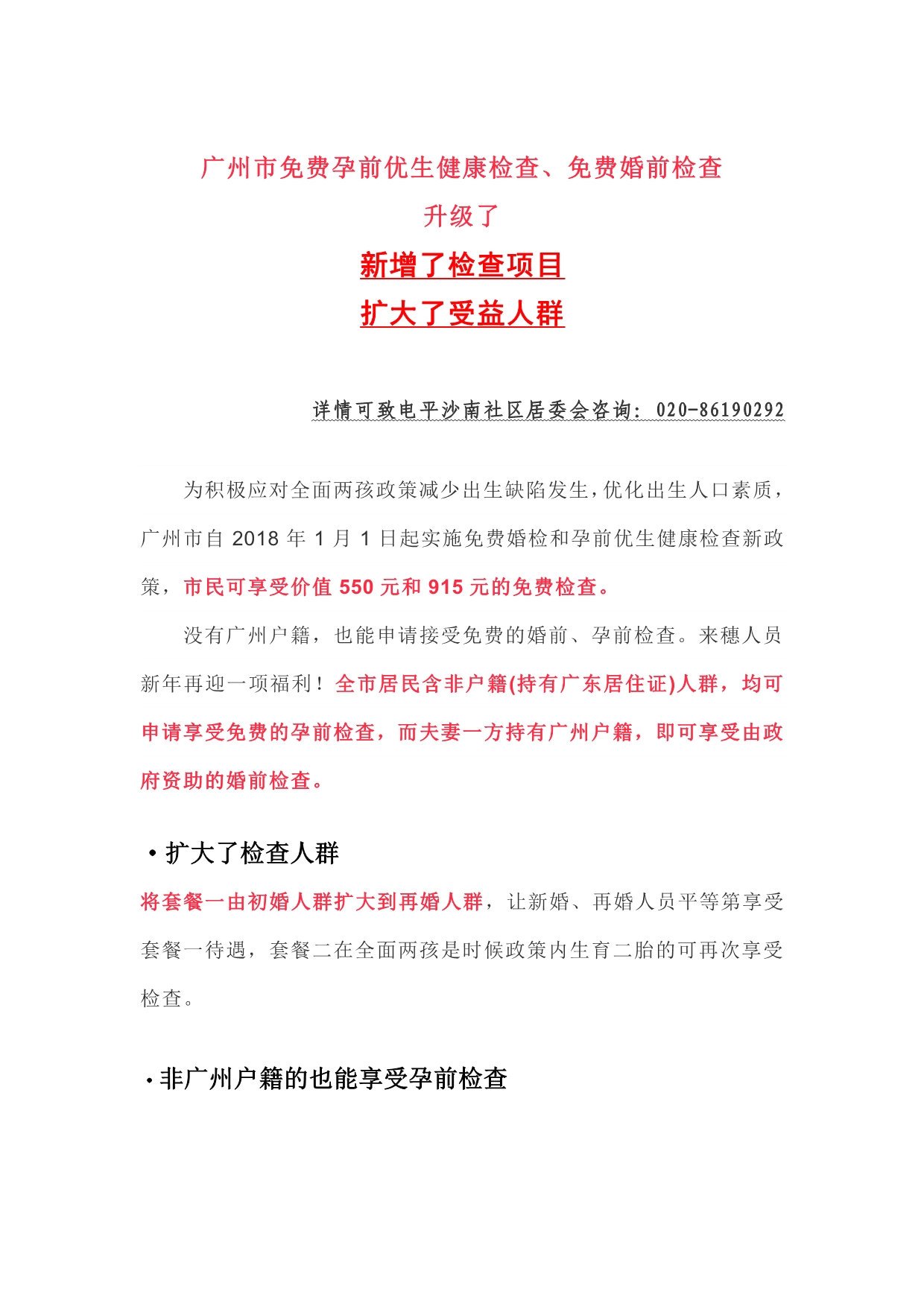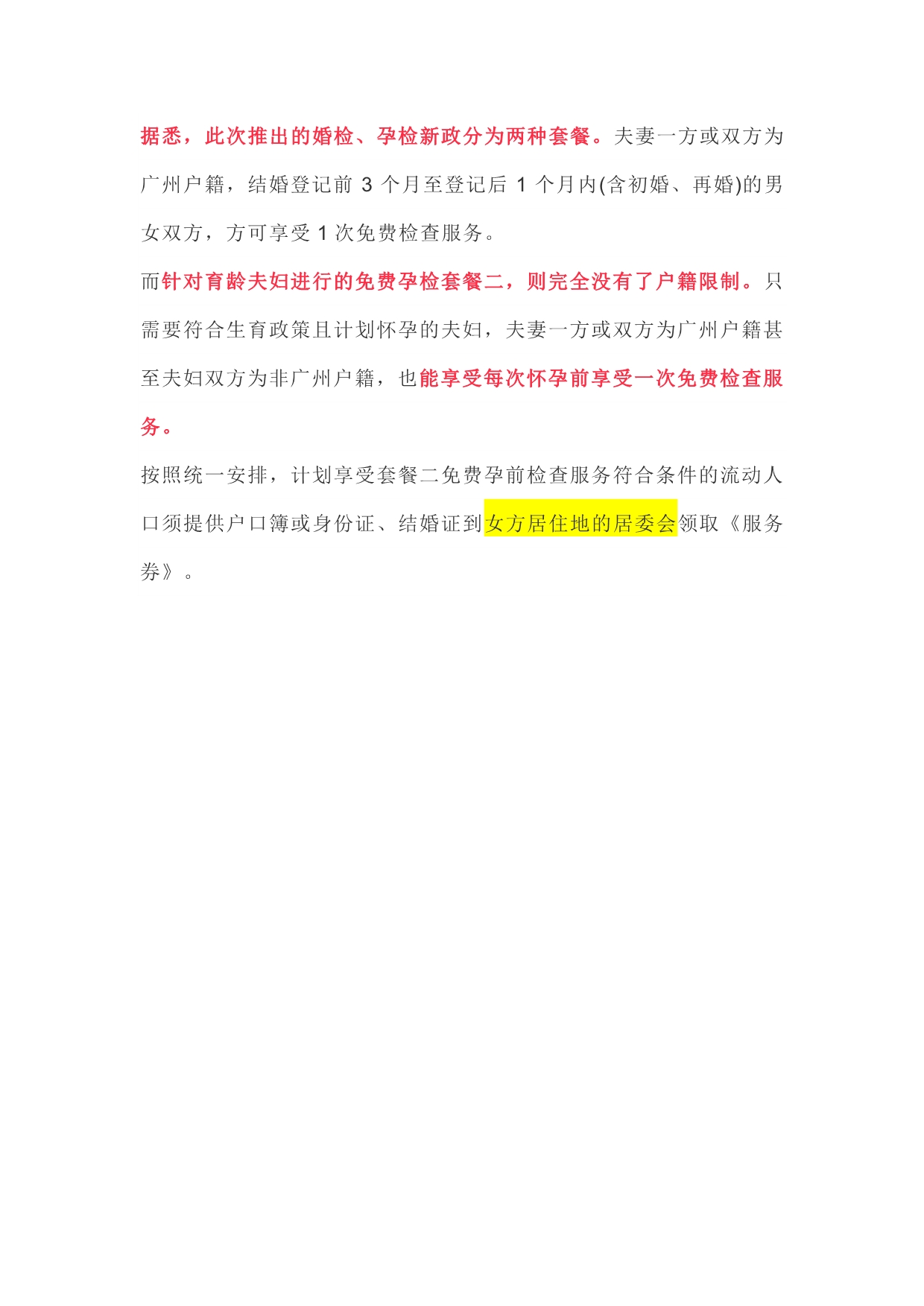 广州市免费孕前优生健康检查、免费婚前检查新政策!