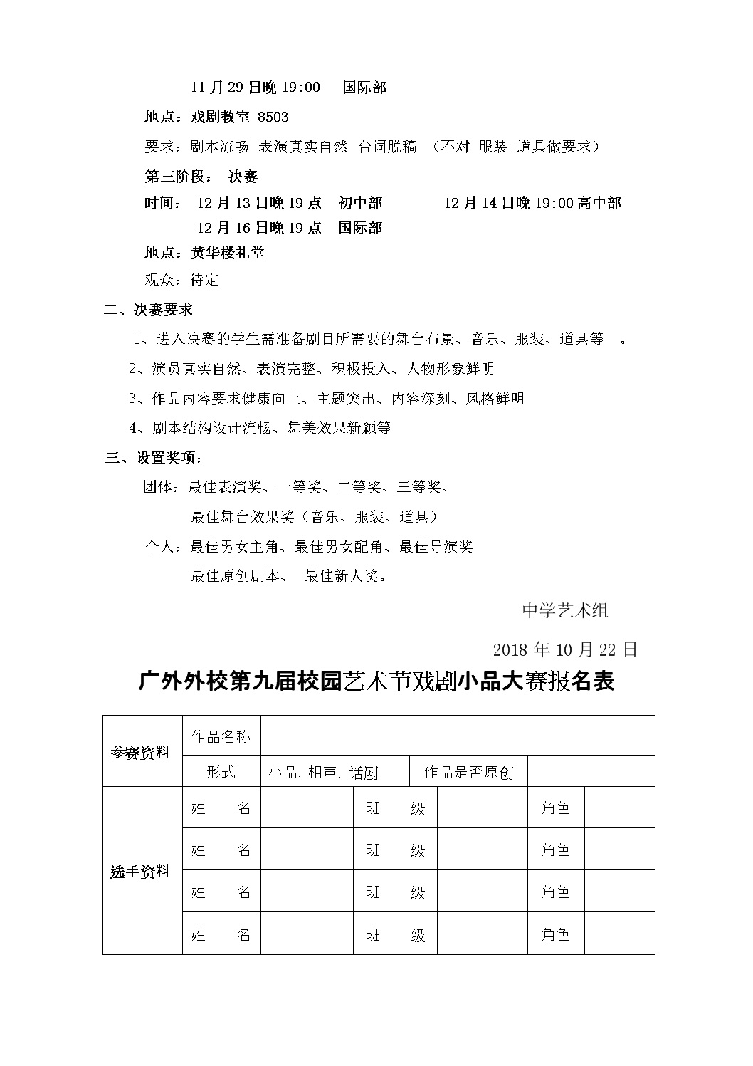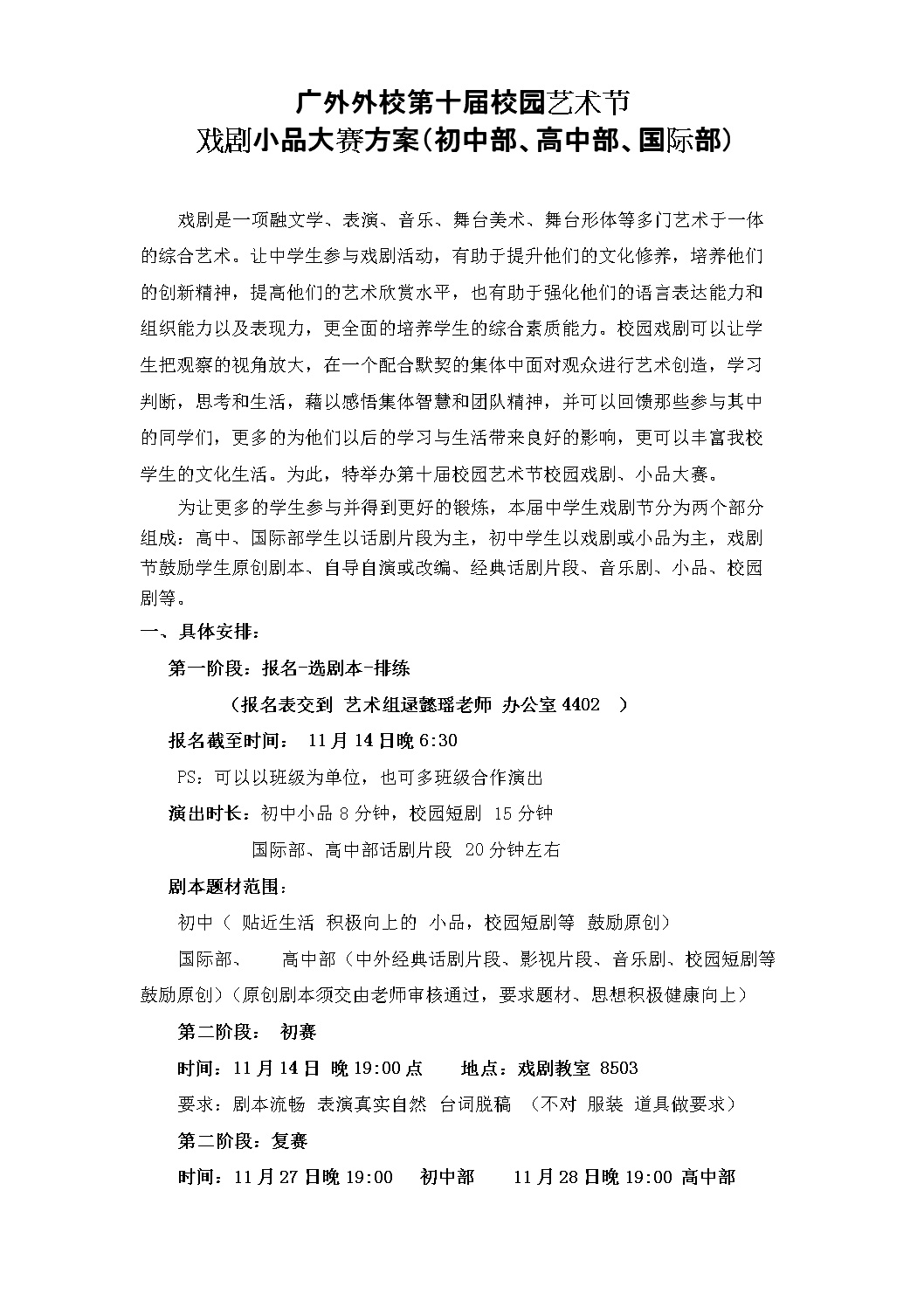 戏剧小品大赛方案(初中部、高中部、国际部)