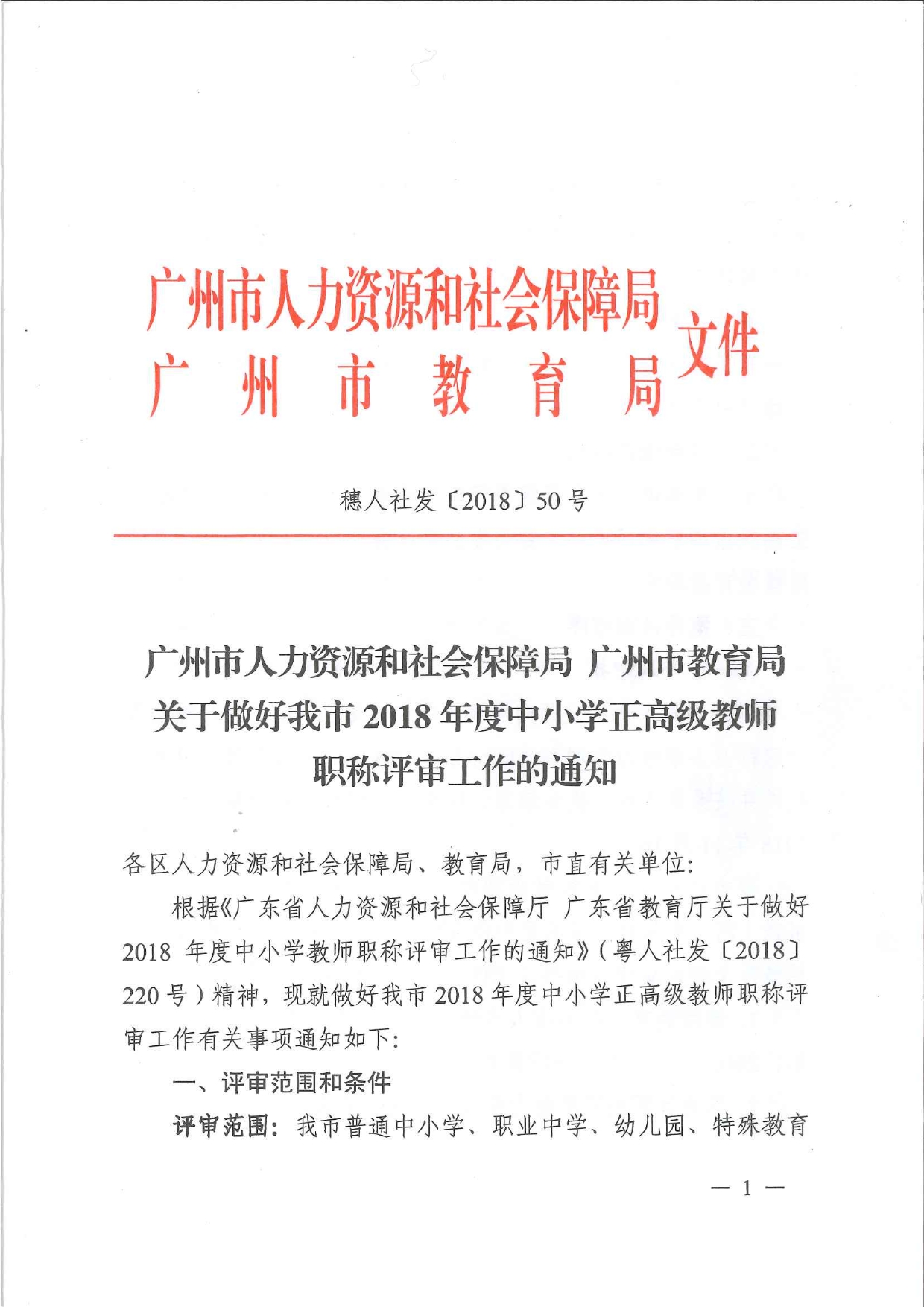 转发广州市人力资源和社会保障局 广州市教育局关于做好2018年广州市中小学正高级教师评审工作的通知