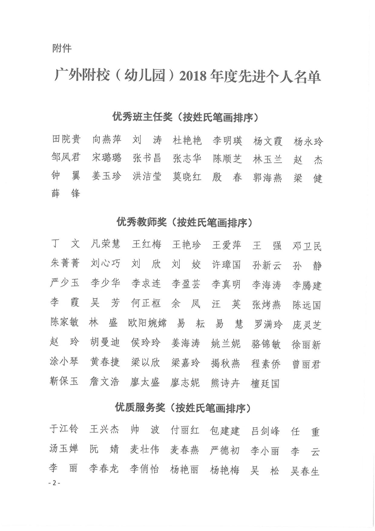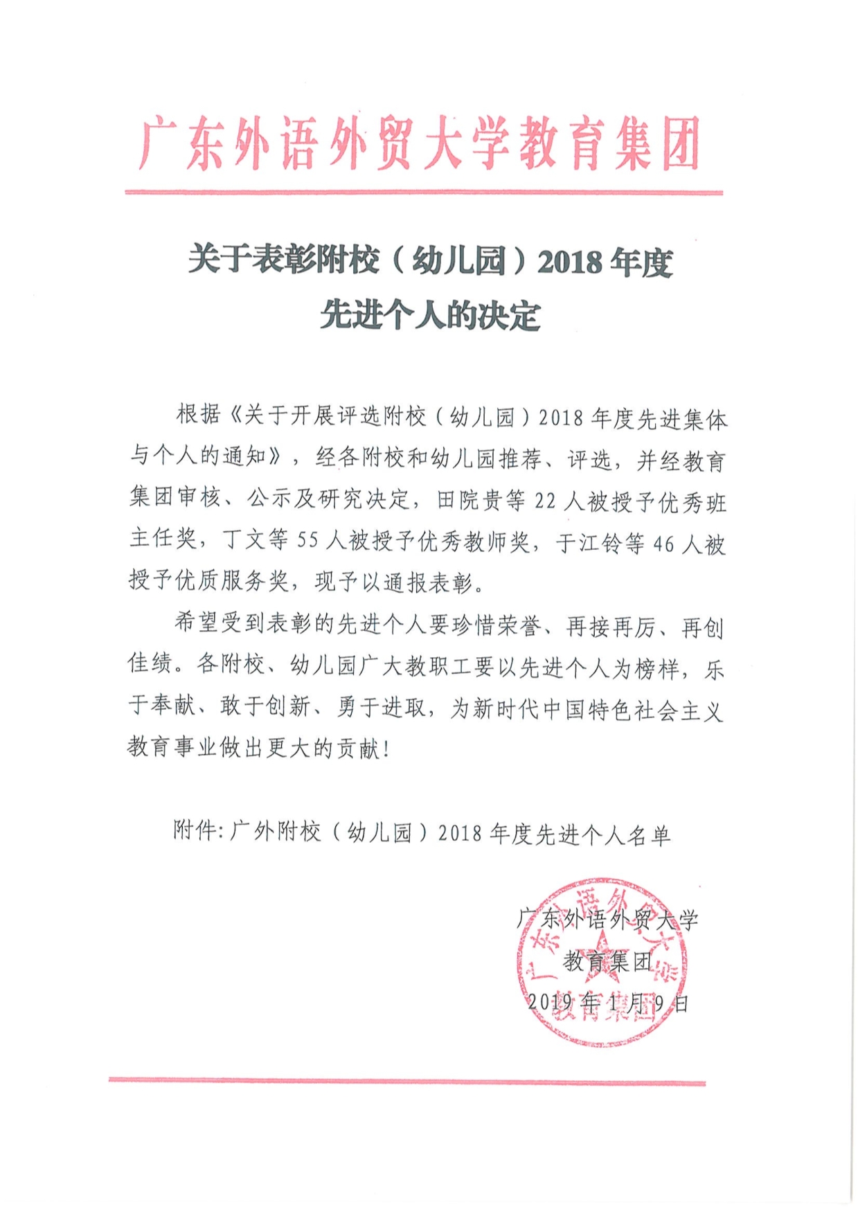 关于表彰附校(幼儿园)2018年度先进个人的决定