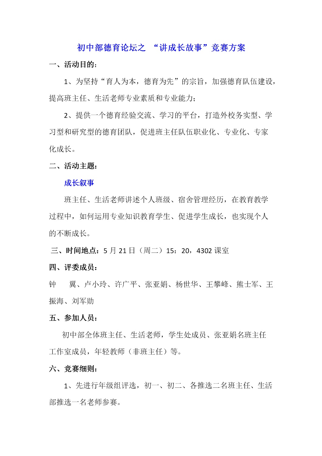初中部德育论坛之 “讲成长故事”竞赛方案