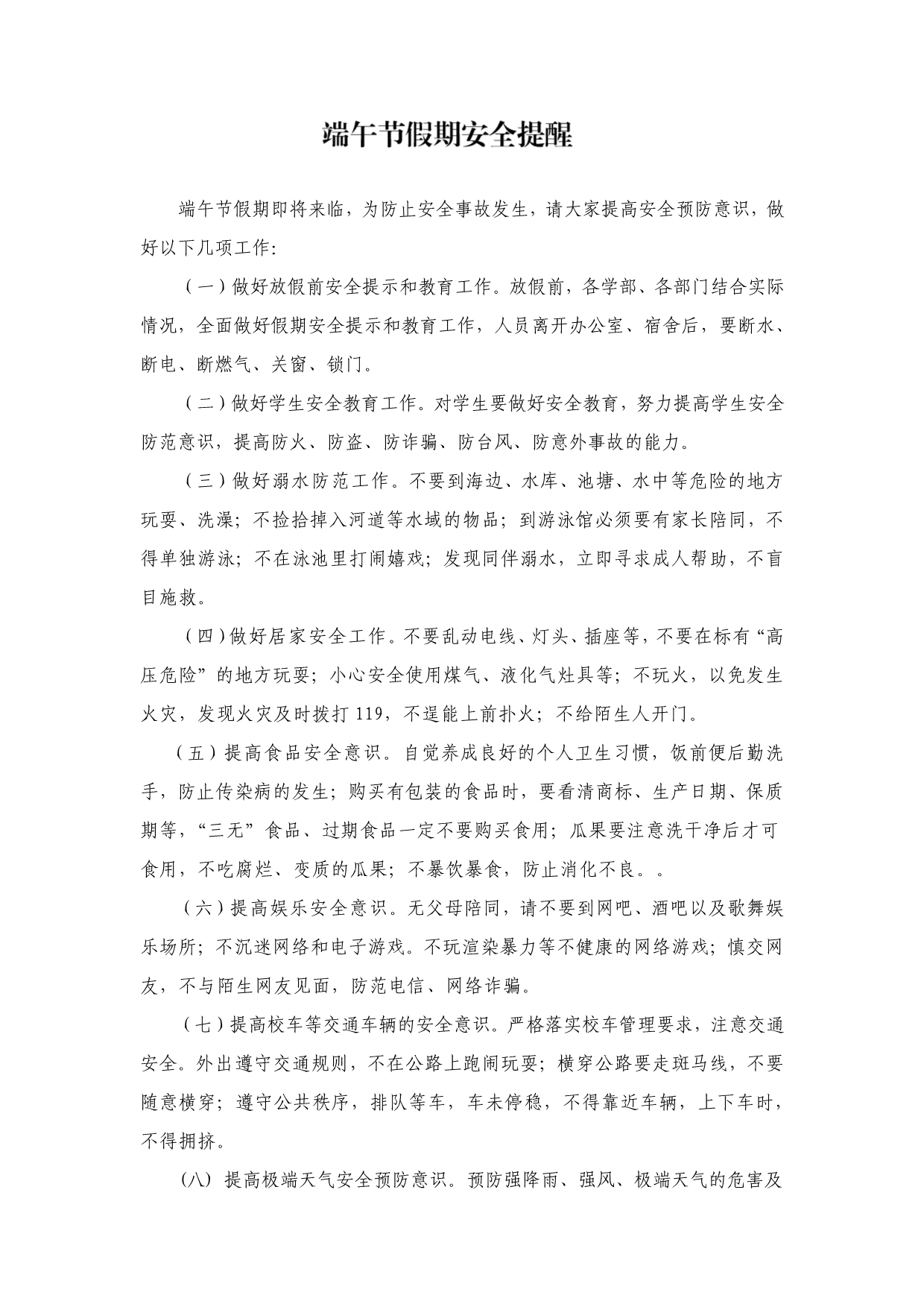 端午节假期安全提醒