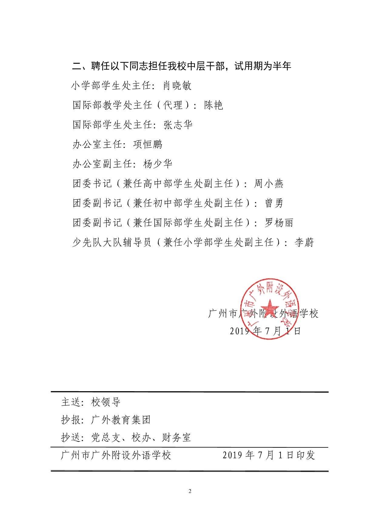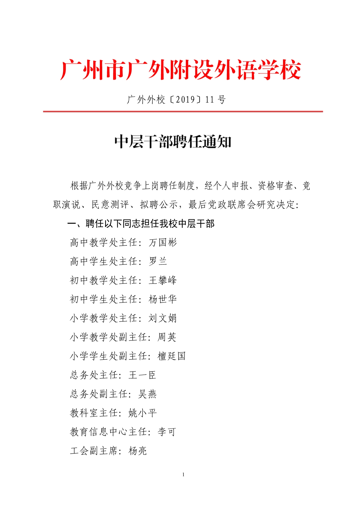 中层干部聘任通知