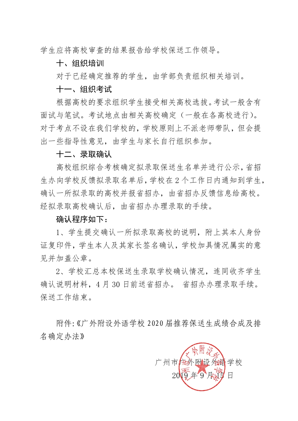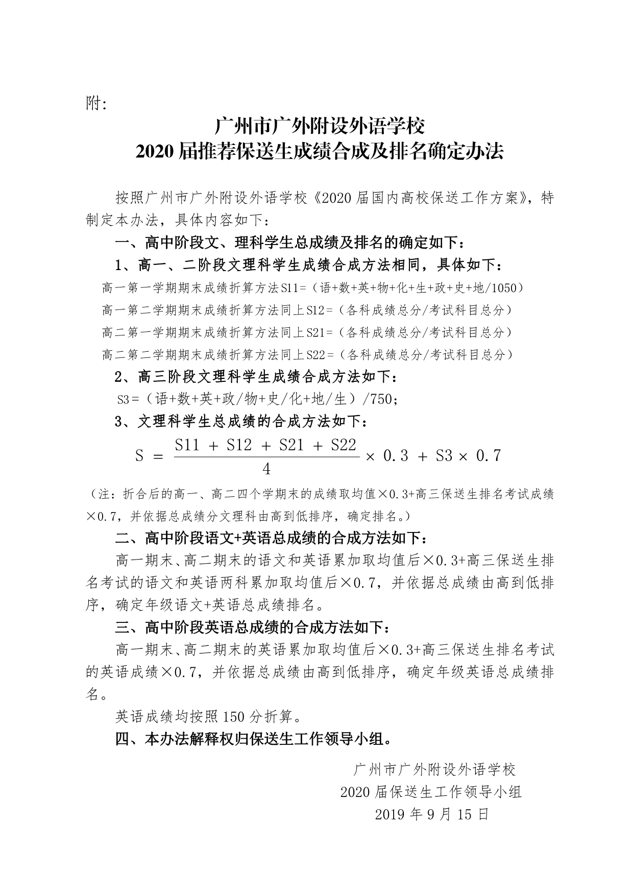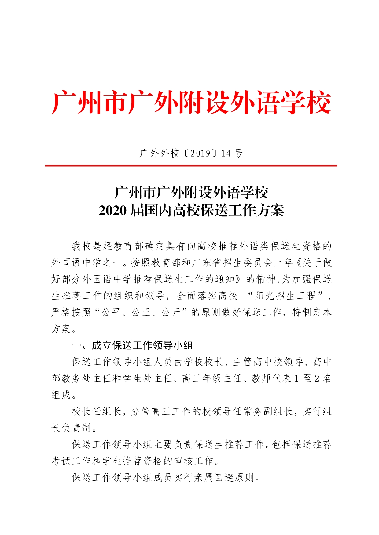 广州市广外附设外语学校2020届国内高校保送工作方案(广外外校〔2019〕14号)