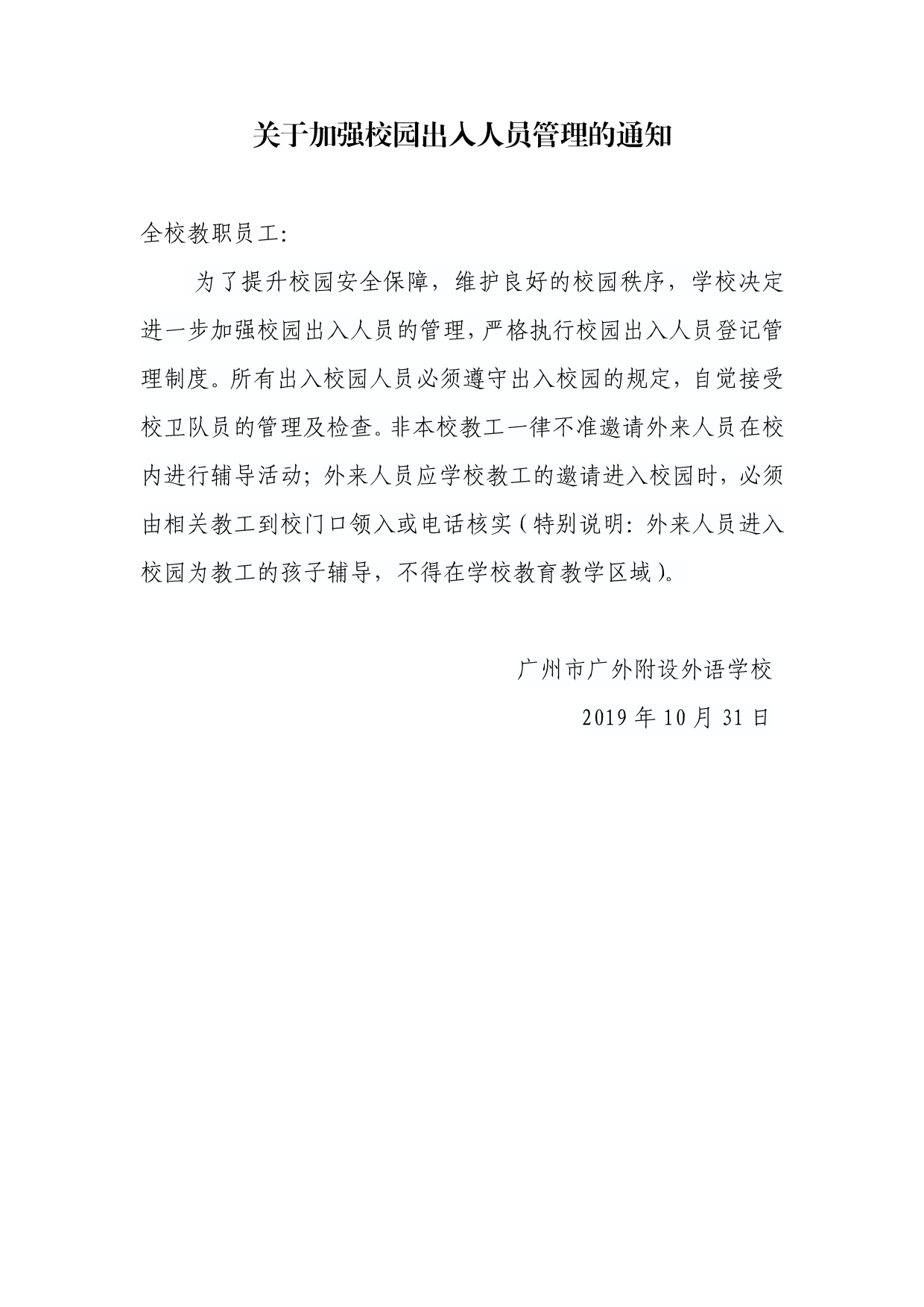 关于加强校园出入人员管理的通知