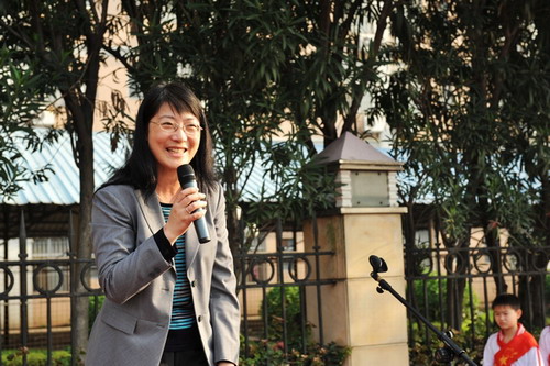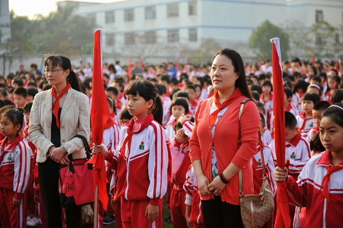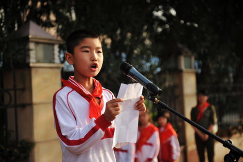 小学部田径场,例行的每周升旗晨会上,小学部全体师生举行了一个简明的读书节开幕仪式。由教师代表涂志强老师、学生代表万北辰同学分别作了讲话。最后,由徐纯副校长宣布:读书节正式启动。
