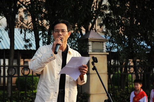 学校第四届读书节马上就要启动了。今天,由我这个貌似读书人的人给大家讲讲关于读书的事儿。语文组的詹老师跟我说,涂老师,你近视得厉害,看起来像读了几本书的人,读书节就去说几句话吧。所以,我现在就站在庄严的国旗下、茂盛的夹竹桃前了。前几天,我在课堂上跟班里的同学说,读书节马上就到了,教室马上欢呼起来。我说咱不是天天都在读书嘛,有个孩子说,不是啊,是又要搞图书换购活动了,可以卖书赚钱啊。我说,你这不是趁火打劫做奸商么。只想着赚钱,要“鄙视”你。