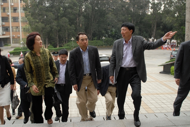会后,前外交部新闻发言人沈国放,艺术家朱明瑛等人,在校领导的陪同下参观校园。