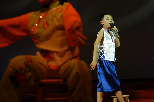 开题报告结束,以“非遗”项目为内容的文艺演出拉开序幕。歌曲《彩云追月》老调新唱,清新柔美的女声,配以B-Box鼓点,既传统又不失现代感;舞蹈《雨打芭蕉》、《月光光》是岭南舞蹈的风格展现,舞蹈为观众铺开了一幅自然景观和民俗风情的画卷,灵动秀美,韵味独特,博得台下观众叫好声连连。