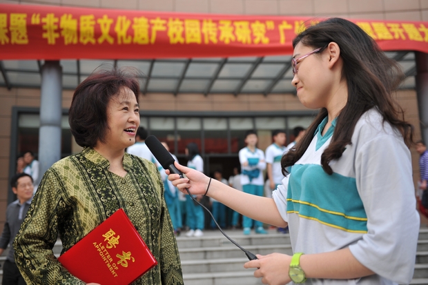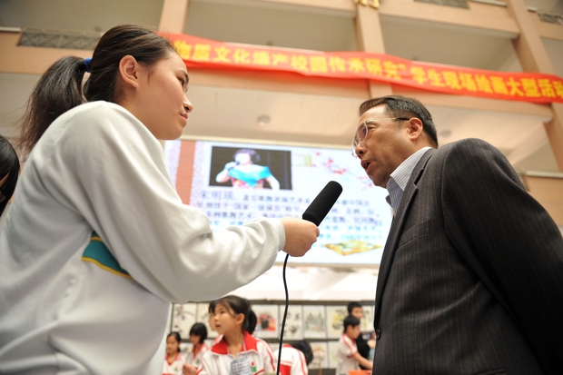 面对同学们的连番“攻势”,沈国放对答如流,几乎是脱口而出:“广东地方文化很有特点,研究的基础会更扎实,‘非遗’进校园对传统文化的传播有重要意义。”“要想成为外交人员,基本素质是要爱国,其次是要有丰富的知识,优秀的语言能力,并且关心时事。”……回答完问题,沈国放轻呼一口气,转身面对电视台的摄像镜头:“外校的办学特色鲜明,不仅体现在对“非遗”的传承研究上,更体现在学生的培养上,学生们能够用国际眼光去看待问题,这对国际人才的培养是十分有利的。”