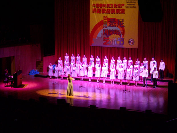 8月12日,我校艺术团的四个歌舞类节目以及一批学生书画作品参与了在悉尼歌剧院的展演。极富广东特色的舞蹈《女孩芭蕉》、《嘻雨》、歌舞《月光光》及合唱《彩云追月》赢得了现场观众阵阵掌声及高度赞赏。而同一时间在悉尼歌剧院画廊展出的学生岭南美术作品,也收到了意想不到的效果。