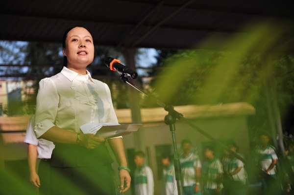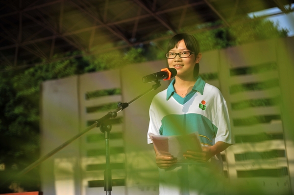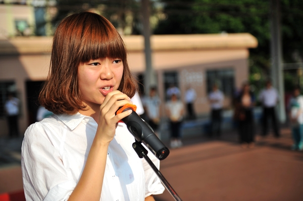 升旗仪式后,高三学生代表张雨文登台做了发言。她在发言中不仅谈到高中生活的感受,还为学弟学妹们提出了学习、生活建议,她说:“高中可以说是学习和活动实现双向推进的重要阶段。实现梦想无须付出一生的努力,但有一点很确定,即每一分钟所蕴藏的力量。”