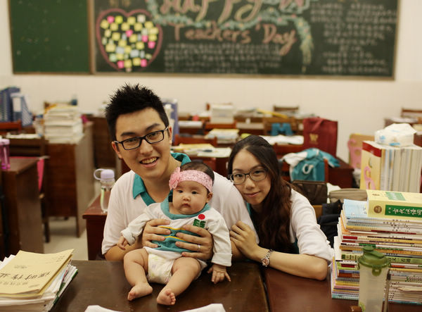 灯会时间过半,不少同学仍在场内穿梭不停,享受难得的快乐时光。这时,一对身穿校服,怀抱宝宝的年轻男女吸引了大家的目光。这是怎么回事?就在大家猜测的同时,他们俩也被不少老师认出。“这不就是97级学生尹蕴与陈俊生吗?”当年的学生,如今已为人父人母。原来,尹蕴的弟弟现在我校初三年级,当得知中秋灯会的消息后,他们决定带着半岁的宝宝回到母校,一同重温当年的美好时光。为了让宝宝也彻底变成“外校人”,他俩还给宝宝改装了一套迷你版外校校服。消息传遍灯会现场,大家都抢着跟一家三口合影。