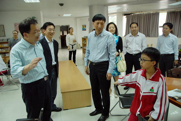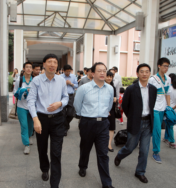 屈哨兵一行在校领导的陪同下参观了我校校园硬件设施建设。由于时值放学高峰段,虽然校园人来车往略显忙碌,但整个校园管理忙而不乱、紧张有序,得到了屈哨兵的高度赞赏。