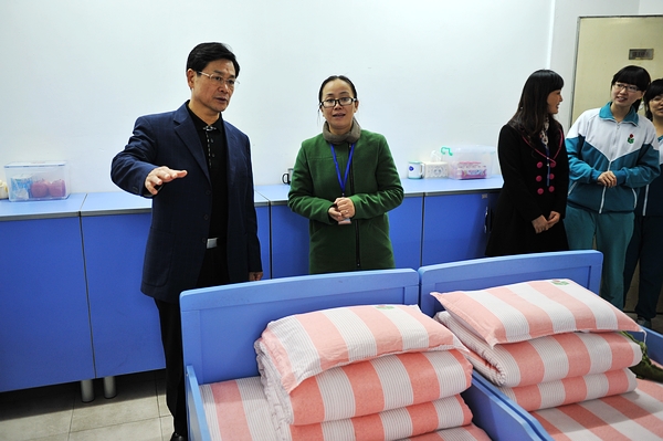 从文化长廊到小学生宿舍楼,陈云贤边走边看边问,仔细了解我校校园文化建设、教师养老待遇等情况,我校校长李建民向陈云贤一一做汇报,陈云贤频频点头。在艺术培训中心,学生们正在老师的指导下吹拉弹唱,气氛十分热烈。陈云贤对学生们的艺术特长展示表现出浓厚的兴趣,颌首微笑,驻足良久。