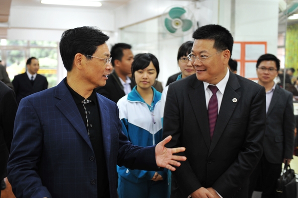 随后,黄冈中学广州学校代表、省教育厅、市教育局主要负责同志在汇报交流中先后发言。听完汇报后,陈云贤肯定了我校和黄冈中学广州学校在推进素质教育、促进学生全面发展方面所取得的成绩。他表示,民办教育在广东省教育结构中起到了举足轻重的作用,为促进民办教育结构、办学方式的优化,省教育厅将扶持与促进民办教育规范特色发展,从多角度了解民办教育发展,完善国家相关政策,旨在促进和扶持我省民办教育规范特色发展上的“先行先试”。