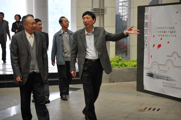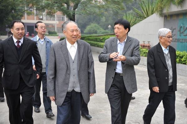 在黄华楼礼堂前,考察团对我校极富人文气息的校园景致赞赏不已。虽然正值十二月寒冬,但校园里的紫荆花迎风怒放。站在紫荆花下,柳斌十分感慨,他曾于2000年访问我校,如今的外校和当年相比有了惊人变化。柳斌说,外校校园更大更美丽了,学校的办学特色也更加显著。