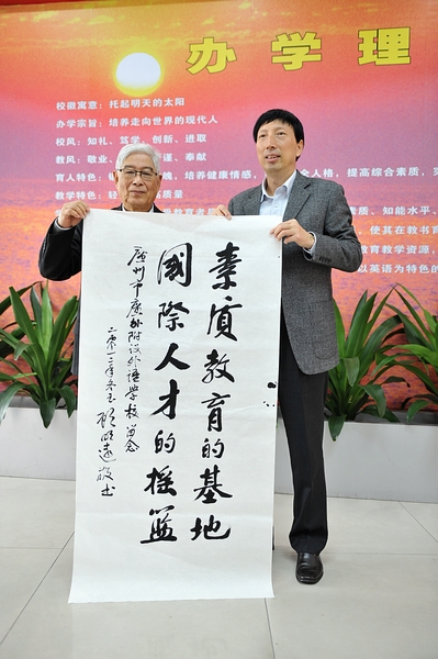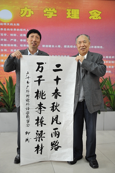 明年恰逢我校建校二十周年,李建民校长诚邀三位教育界泰斗为我校题词,专家们欣然接受。柳斌题词:“二十春秋风雨路,万千桃李栋梁材”;顾明远题词:“素质教育的基地,国际人才的摇篮”。
