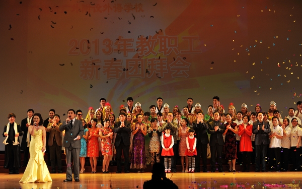金龙摆尾逍遥去,银蛇昂首迎春来。1月13日晚,黄华楼礼堂流光溢彩、欢歌笑语,外校700名教职员工欢聚一堂,喜迎新春佳节。