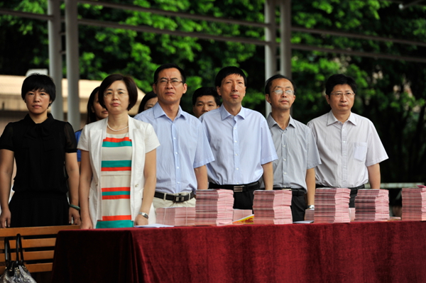国旗仪仗队首先庄严入场。国歌奏响,全体师生肃立。伴随国旗徐徐升起,在场所有人的目光都聚集在那鲜艳的一抹红上。