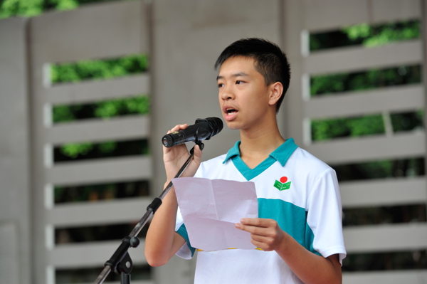 随后,学生代表和教师代表分别登台发言。学生代表杨颖斌在发言中呼吁大家,时逢校庆20周年,大家要在新学期未雨绸缪,有目标、有计划地安排自己的学习生活,为实现心中梦想、捍卫学校荣誉而努力。优秀教师代表张霞老师在发言中鼓励学生要抓住每一个机会,以崭新的姿态,饱满的精神投入到学习生活中,迎接新的挑战,最终实现自我价值,超越自我。
