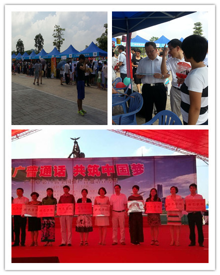 授牌仪式及庆典活动后,与会的上千名来自各行业部门各教育部门各学校的领导、老师和同学们一起流连在32个先进单位的展出摊位前参加活动。为了吸引观众的眼球,各单位使出浑身解数,什么猜谜有奖,读绕口令送小礼物等,活动不仅吸引了各位领导,更吸引了来公园游玩的市民踊跃参与,这次的活动真正体现了“突出中国梦主题、激发各行业联动、兼顾城乡平衡发展、创新媒体宣传形式”四大活动特色,激发了民众对国家通用语言文字的认同感、自豪感和自觉规范使用意识。
