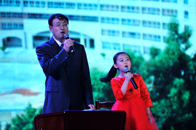 此外,我校还邀请来了1994级校友陈尚实与我校师生演唱原创歌曲——《献给校庆的歌》,歌曲大气磅礴,起伏跌宕,将现场气氛引向了又一个高潮。