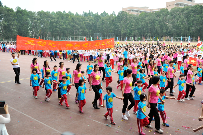 11月4日早晨的广外外校田径场,口号声声,彩旗飘扬。在飒爽秋风中,在热烈而喜庆的气氛中,第十五届小学生田径运动会隆重举行。校长李建民、副校长聂德森、副校长谢仁发、校长助理杨如华、校长助理叶和丽、小学部教学处主任刘文娟、小学部学生处主任蒋国冰、小学部教学处副主任周英、小学部学生处副主任吴大海出席了运动会开幕式。