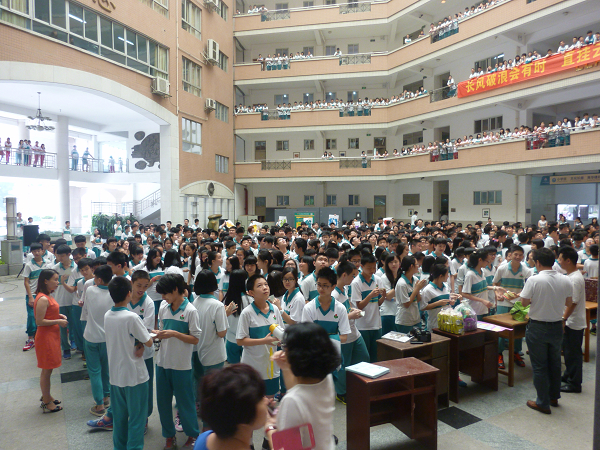 最后,初二年级的同学们以三遍“中考加油,初三加油”结束了他们的口号,而初三的学哥学姐们也以“广外是我家,在家考怕啥!”的豪迈口号表示了他们对外校的热爱。