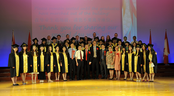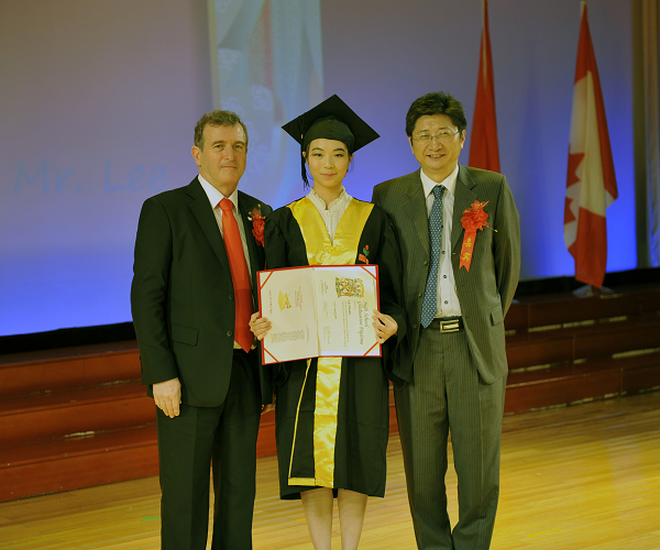 作为校长,我十分高兴与你们一起分享这份荣耀;作为母校,更为你们的成长进步而倍感自豪。请允许我代表学校向顺利完成加拿大高中学业的26名中加班莘莘学子表示最热烈的祝贺!向David校长、黛安女士和他们领导的加方教师团队,还有我们中方的老师们表示深深的敬意!正是你们的言传身教和勤奋工作,才使得同学们共同迎来了这个充满喜悦和成功的收获季节。向为孩子们的成长倾注无数心血的家长们表示衷心感谢!感谢你们对中加项目始终不渝的理解和支持!孩子的成功,饱含着你们的辛劳;外校的辉煌,凝聚着你们的付出!向加拿大政府住广州总领事艾伟敦先生长期以来对我们项目的关注和支持表示感谢!向加拿大新斯科舍省教育部、向派特森教育集团表示感谢,正是有我们的精诚合作,才有了国际部中加项目的壮大和发展。