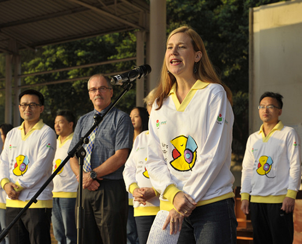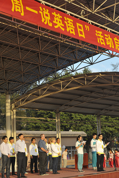 11月24日,我校“周一说英语”活动正式拉开帷幕。启动仪式上,学生代表徐上懿同学、英语教师代表白利军、外教代表Joni、副校长方建军号召全校师生,尽可能地在公众场合使用英语交流,创建良好的校园英语氛围。
