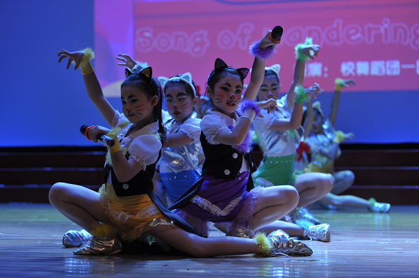 文艺汇演在管乐声中拉开序幕,小演员们以饱满的精神面貌亮相舞台,载歌载舞。舞蹈《天天向上》讲述了孩子们在学习生活中的坚持与成长,音乐剧《流浪猫之歌》跳出了百老汇歌舞的优雅风采,电影配音《里约大冒险》惟妙惟肖、妙趣横生,古筝合奏《荷塘月色》淡雅脱俗、令人浮想联翩。
